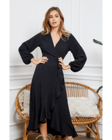 La robe Alessia respire l'élégance tout en restant dans la simplicité. Ses manches bouffantes et sa coupe portefeuille vous accordera un style élégant, tout en mettant votre taille en valeur. Succès garanti !