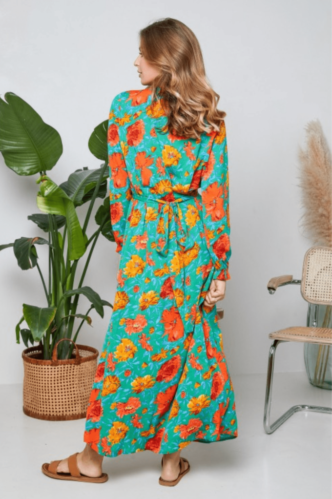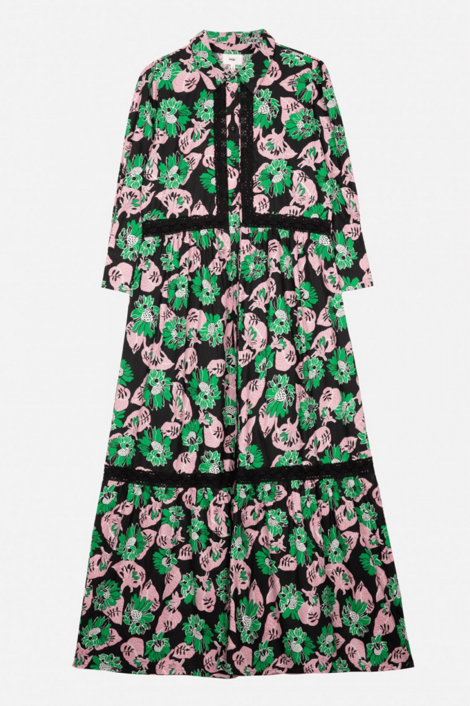 La robe Isra est une des pièces forte de cette collection. On est conquises par ses grosses fleurs esprit années 70 et par sa coupe très flatteuse !