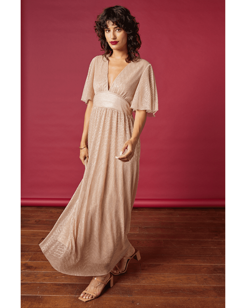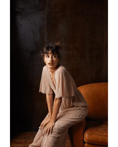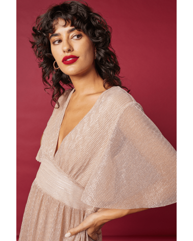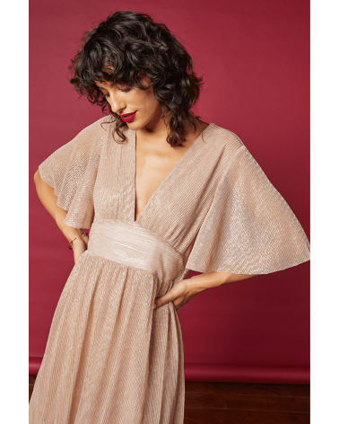 La robe Henriette est une robe maxi en lurex plissé. Avec la robe Henriette vous allez être la reine de la soirée !