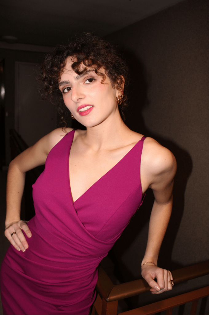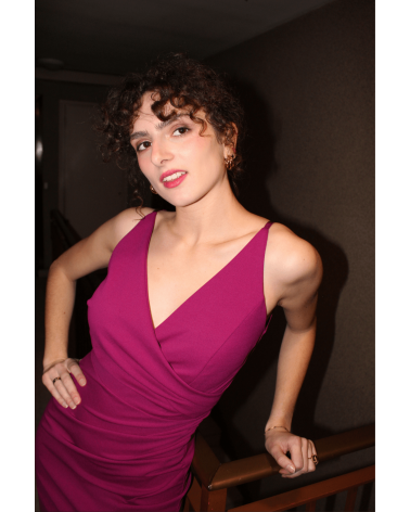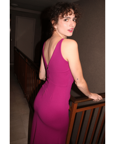 La robe Johanne rose est parfaite pour les fêtes. Sa matière fluide et élastique épousera votre silhouette, louez-la !