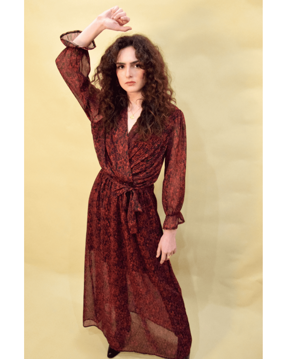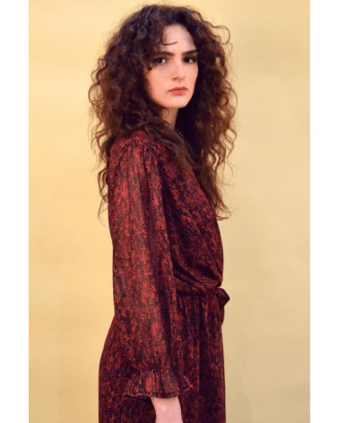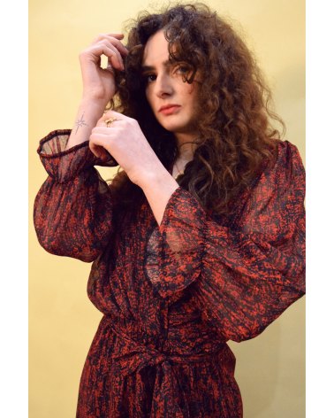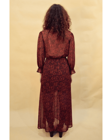 La robe Aude est une robe longueur midi en voile très légère et agréable à porter.