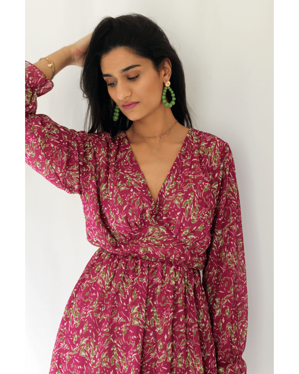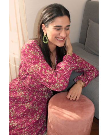 Le robe Iden verte est une robe courte avec un volume aérien et vaporeux qui met en valeur toutes les morphologies.