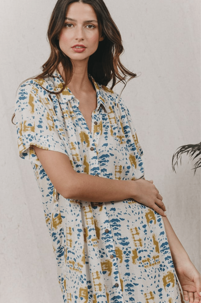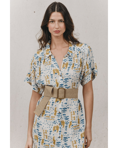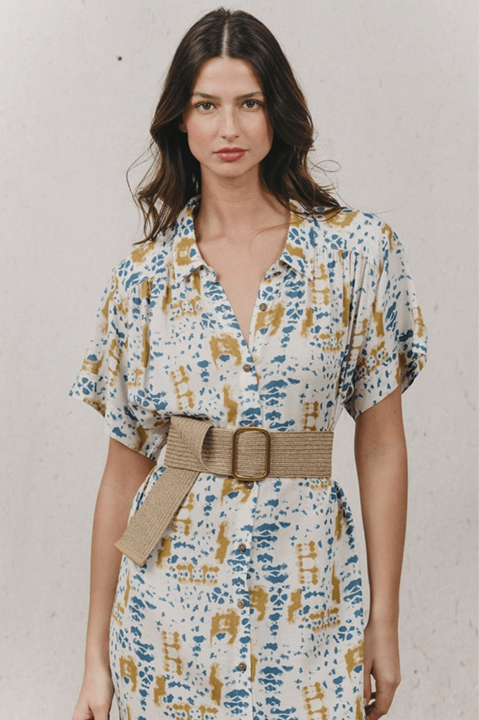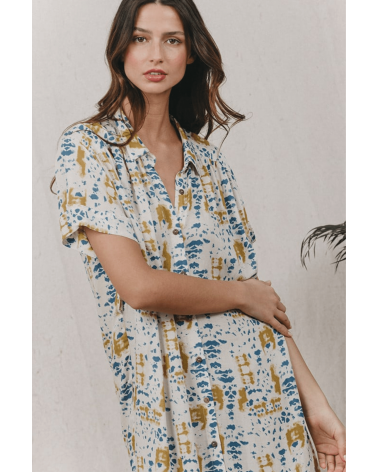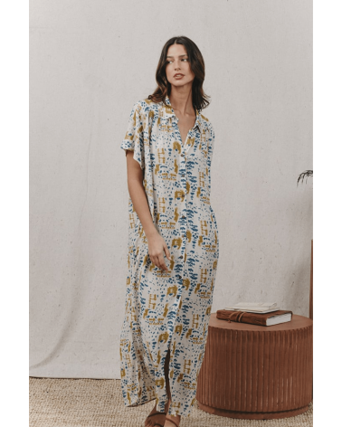 Jaipur est une robe chemise longue dans un imprimé tie & due, avec des fentes sur les côtés. Elle captive par sa coupe casual et illumine le teint. Ultra confortable, elle peut se porter avec ou sans ceinture.