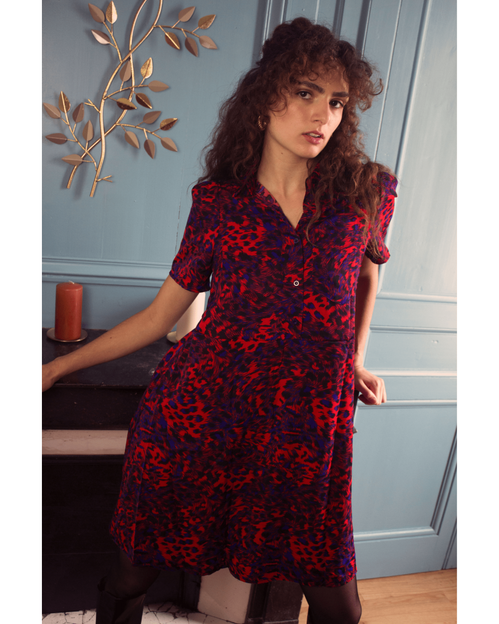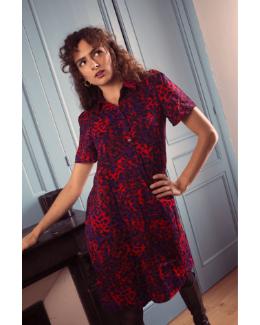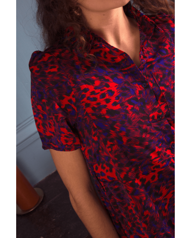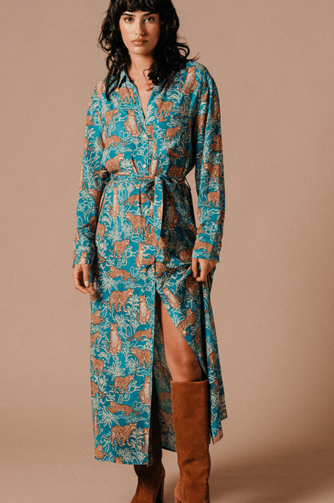 La robe Veri est une robe chemise longue avec un motif sauvage coloré. Une pièce à porter avec des bottes hautes ou des baskets, cette robe se suffit à elle-même ! Elle n'attend que vous, louez-la !