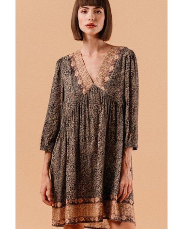 La robe Lisa Noire est une robe courte imprimée, doublée, à encolure V. Son imprimé inspiration inde, fait son originalité. Une pièce forte à porter avec des bottes hautes ou des baskets. Cette robe se suffit à elle. Elle n'attends que vous, louez la!