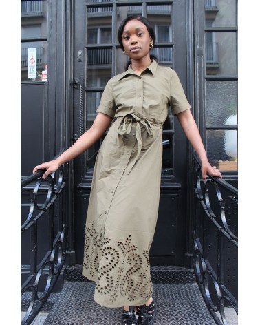 Anita est une robe chemise longue, parfaite pour les beaux jours. Vous pourrez la porter avec des baskets de ville pour un look décontracté ou des sandales à talons un look chic et habillé. Louez la !