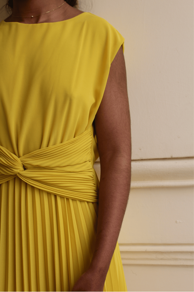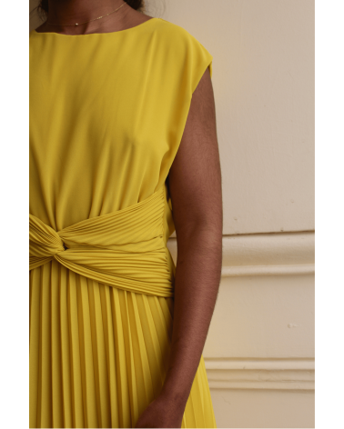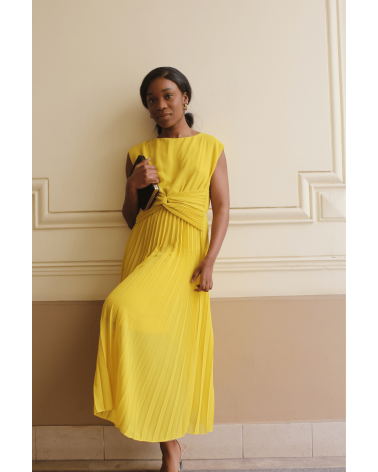 Joria est une robe avec une jupe plissée. Son noeud et sa couleur font d'elle une robe classique et intemporelle. Elle sera parfaite pour tous vos mariages et vos soirées cet été. Louez-la !