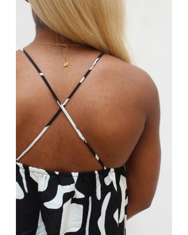 Gabriella mesure 1m63 et porte une taille S. La robe taille normalement.