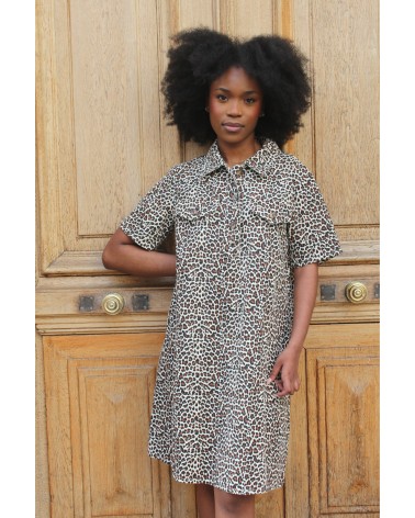 Affirmez votre style avec la robe Léopole, une coupe fluide et un imprimé léopard audacieux. Son col chemise et ses poches à rabat ajoutent une touche casual-chic. Parfaite avec des baskets ou des bottines, elle s’adapte à toutes vos envies ! Allez hop, dans la Box !