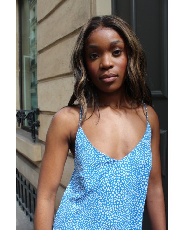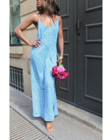 Simple, élégante et légère, la robe Musy glisse sur la peau comme une caresse d’été. Sa coupe longue et épurée flatte la silhouette, tandis que son imprimé bleu texturé apporte une touche graphique discrète mais affirmée. Facile à porter, elle s’adapte à toutes les occasions : un brunch en ville, une soirée les pieds dans le sable, ou même un rendez-vous romantique.