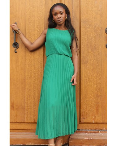 Sombre et raffinée, la robe longue Corail en vert foncé séduit par sa simplicité élégante. Sa jupe plissée donne du mouvement à chaque pas, tandis que son dos plongeant apporte une touche sensuelle et moderne. Sa coupe fluide flatte toutes les silhouettes, parfaite pour les mariages, les cérémonies ou les soirées d’été.