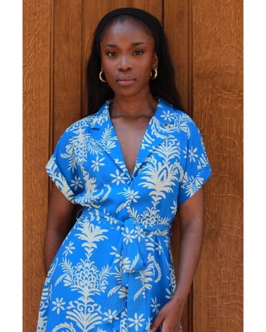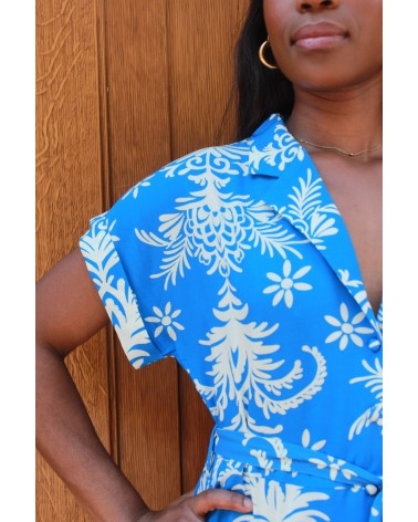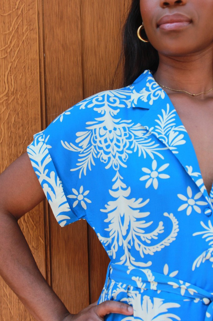 Optez pour la robe Grèce, une pièce courte et fluide qui allie élégance et modernité. Son coloris bleu roi profond, rehaussé de motifs blancs délicats, apporte fraîcheur et style à votre tenue. La ceinture à la taille souligne parfaitement la silhouette pour une allure féminine et sophistiquée. Idéale pour vos sorties estivales, vos brunchs ou soirées décontractées, cette robe vous accompagnera avec confort et élégance.