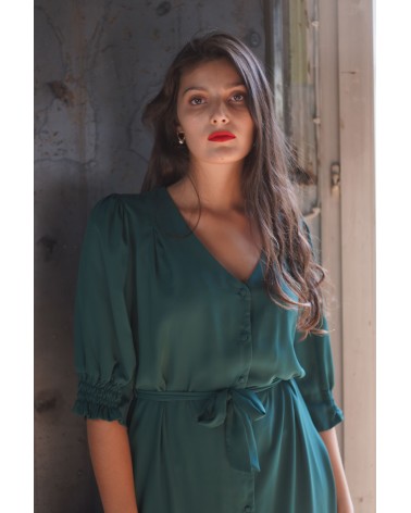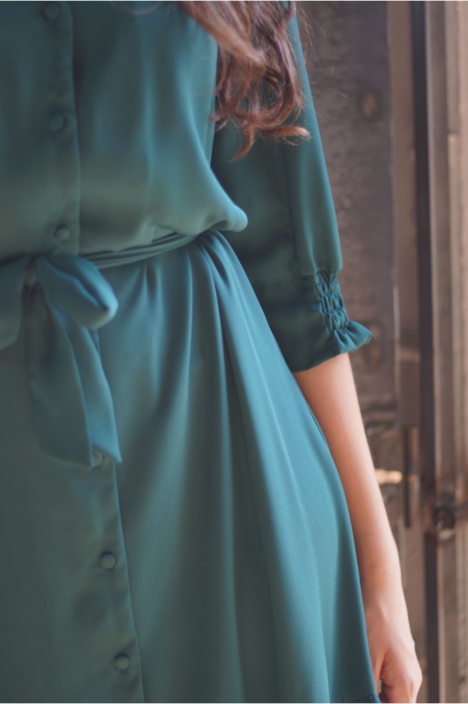 • Robe midi avec une coupe évasée, cintrée à la taille par sa jolie ceinture ruban