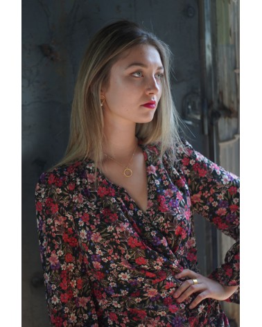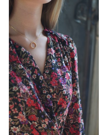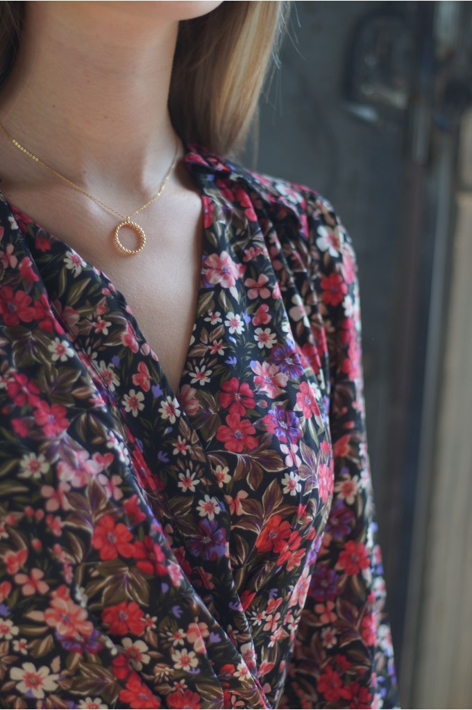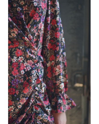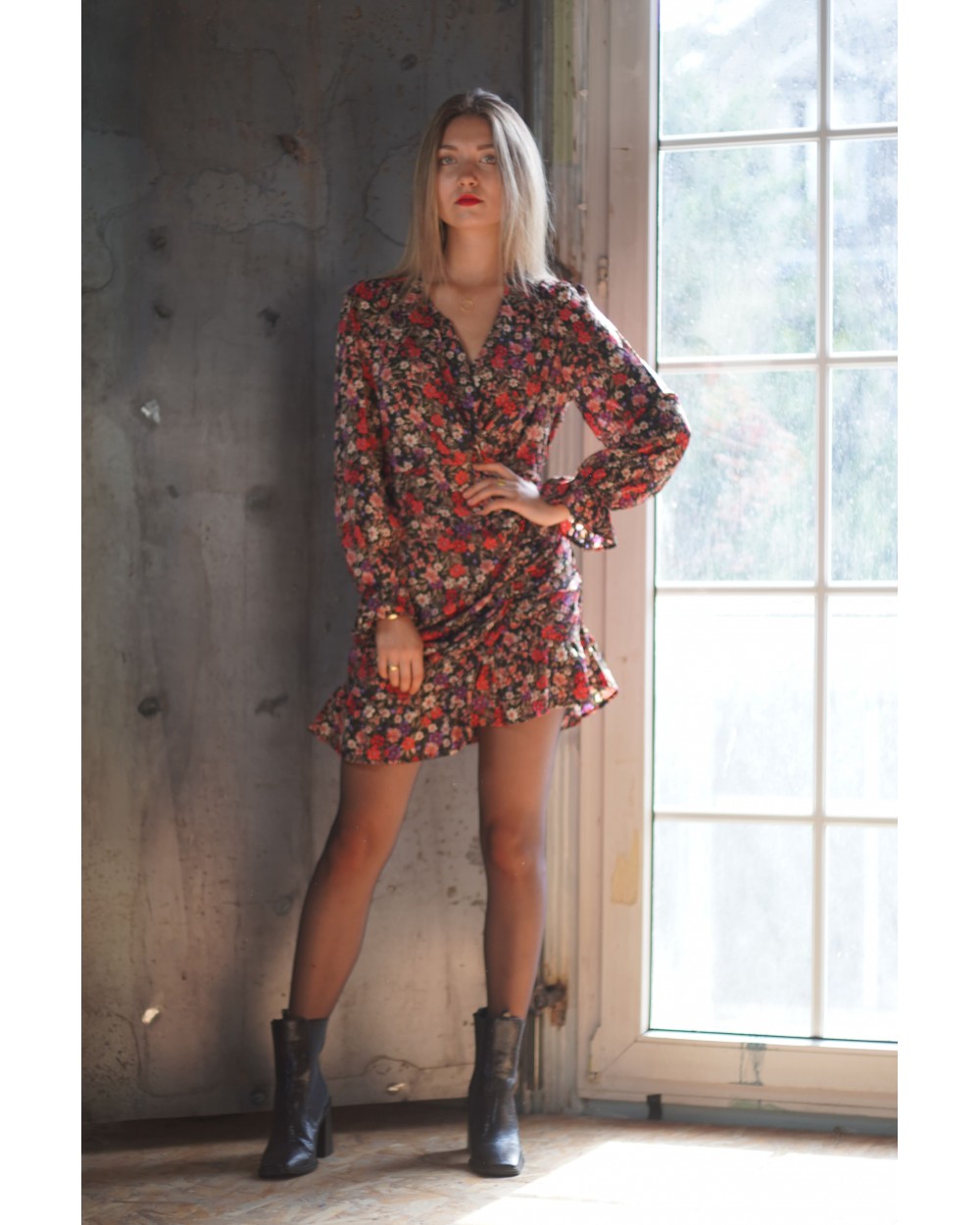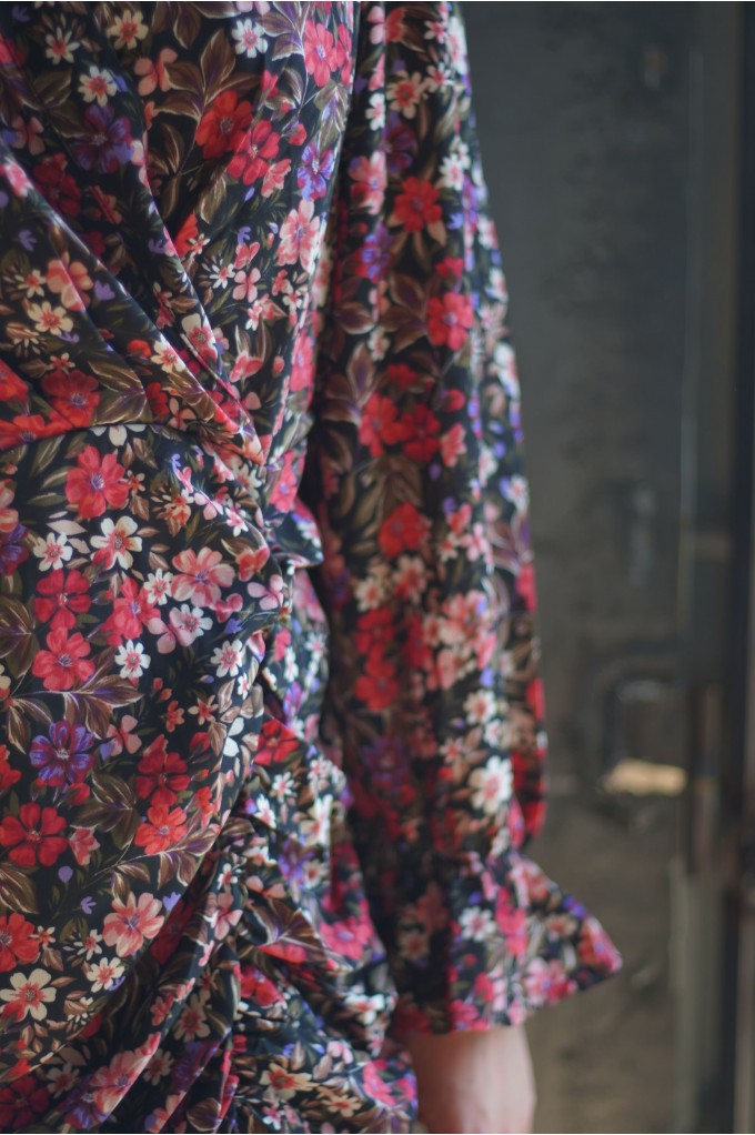 J'adore cette robe fleurie avec un plissage devant ! Elle est courte mais le petit volant est suffisant et fait la différence.