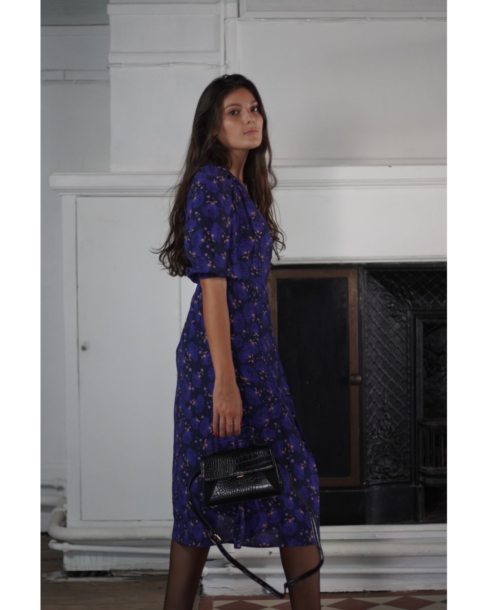 Cette robe midi à l'imprimé vintage est parfaite pour la mi-saison. Son élastique dos pour marquer la taille ainsi que son drapé sur l'avant la rendent féminine et chic. A porter aussi bien avec des talons qu'avec des baskets pour un look plus décalé.