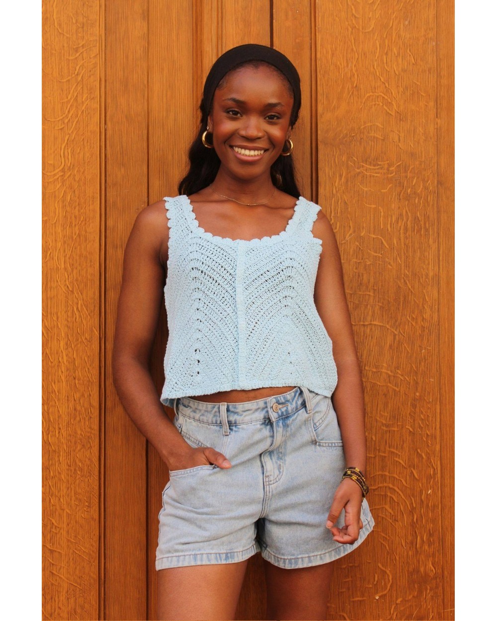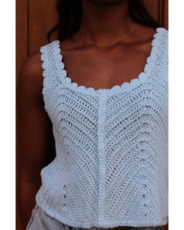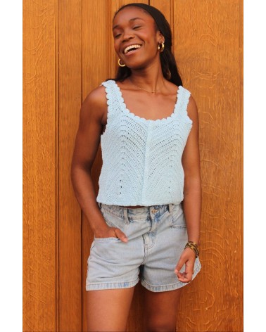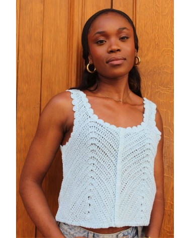 • Top bleu tressé, court, à fines bretelles