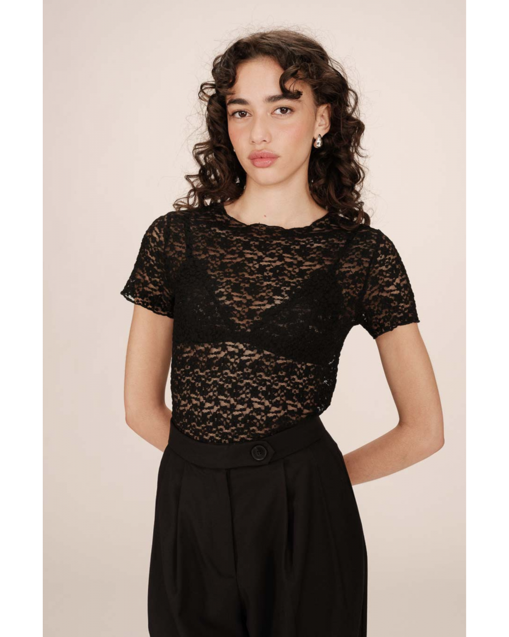 Un basique qui ose la délicatesse ! Le top Swift dévoile une dentelle noire tout en finesse, pour une touche de sensualité discrète à glisser sous un blazer ou à porter seul.