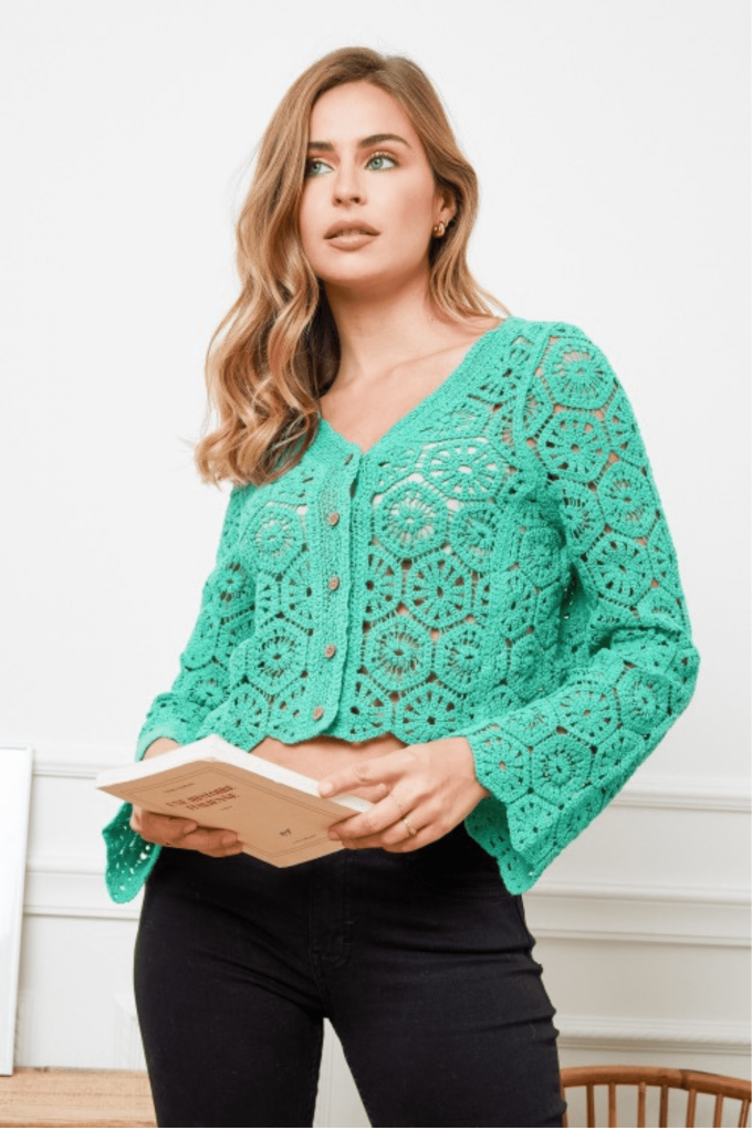 Le gilet Sami est une pièce qui saura vous accorder un côté habillé et sexy. On craque pour sa couleur émeraude, à porter avec un jean ou un pantalon noir.