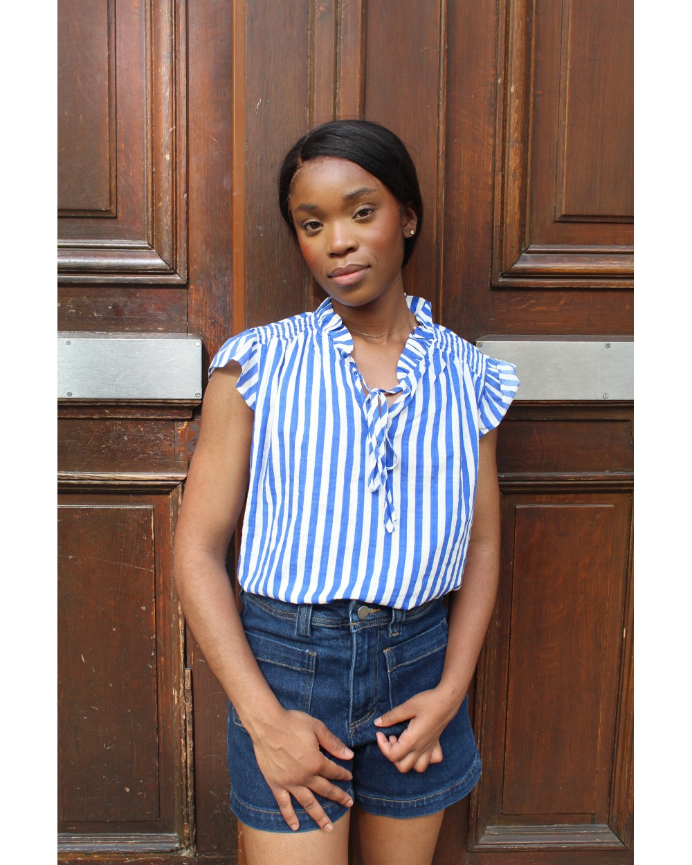 Gabriella porte une taille S. Le top taille normalement, optez pour votre taille habituelle.
