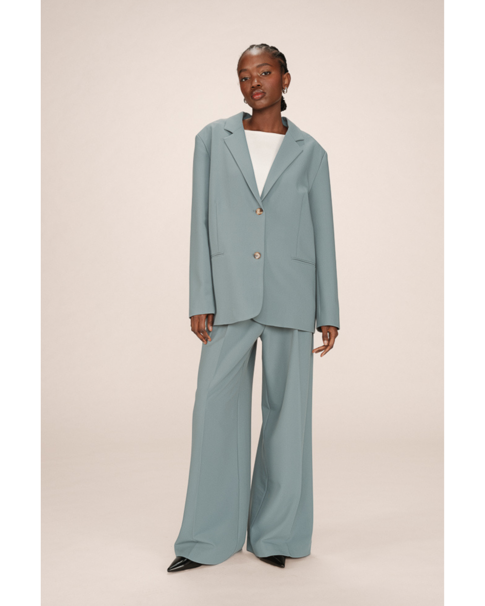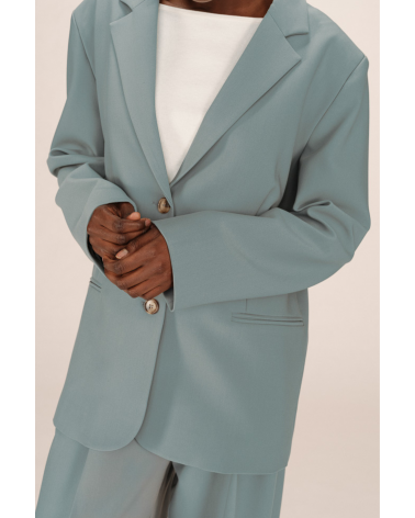 Un basique tailoring aux lignes épurées ! La veste Strong séduit par sa coupe droite oversize, sa teinte bleu grisé douce et ses boutons effet écaille. À porter en total look avec le pantalon assorti ou pour casser un look casual. Allez hop dans la box !
