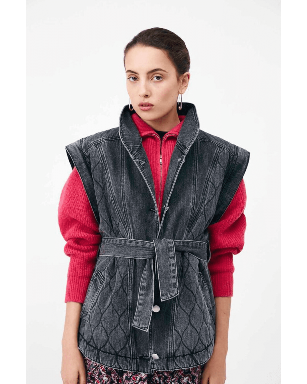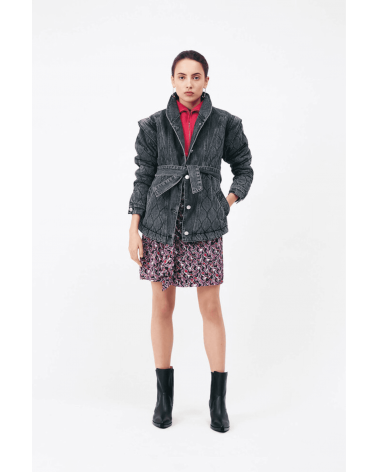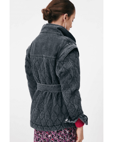 Dallas est une veste oversize en jeans à manches amovibles à dézipper, parfaite pour la mi-saison, louez-la.