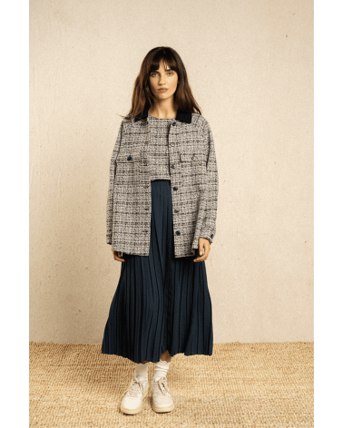 La veste Isadora marine se porte parfaitement en tant que surchemise que comme haut. Allez hop, dans la Box !