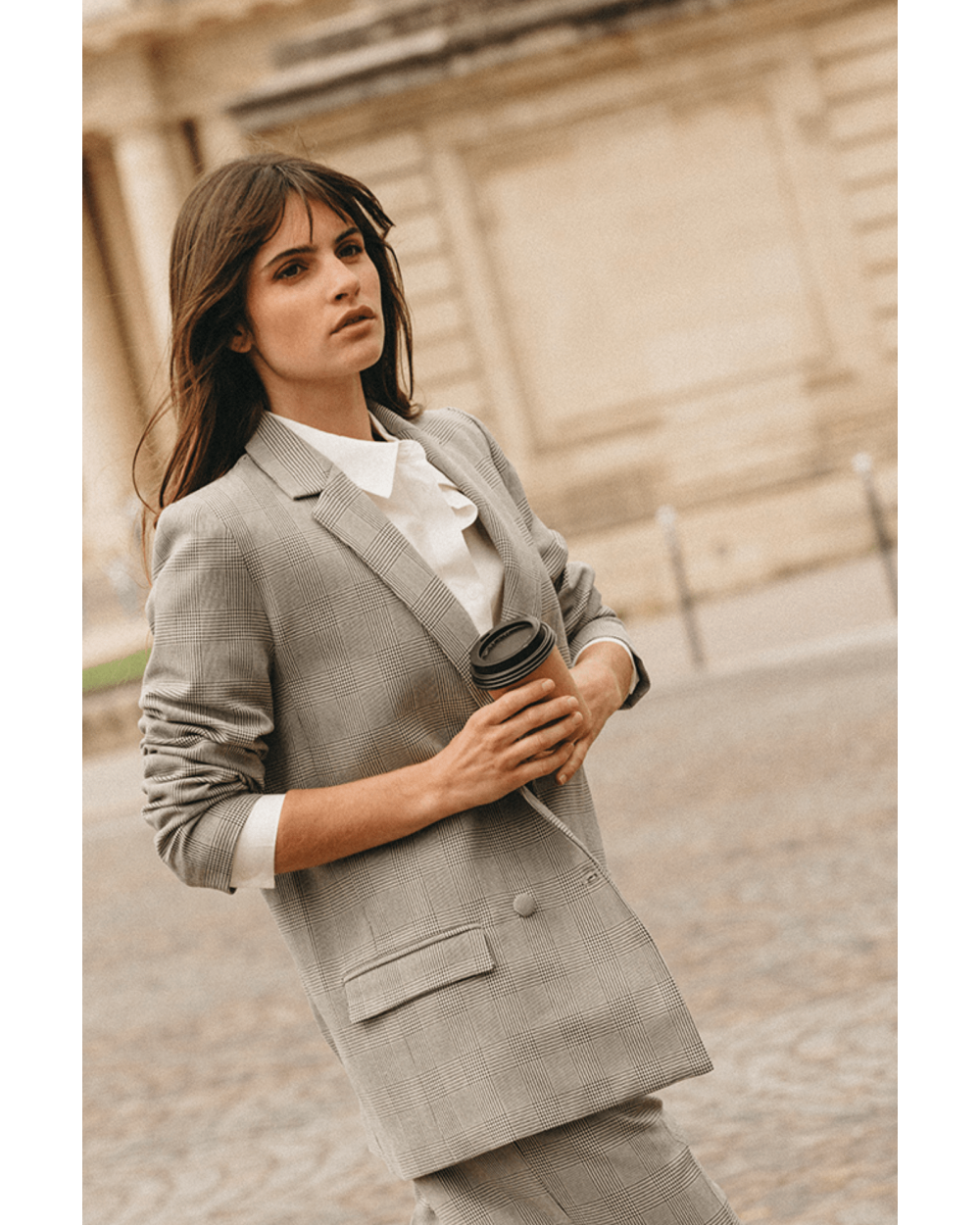 Ce blazer à carreaux est notre chouchou pour un style classique chic. Son petit plus : sa coupe décontractée qui met en valeur la silhouette. À louer absolument !
