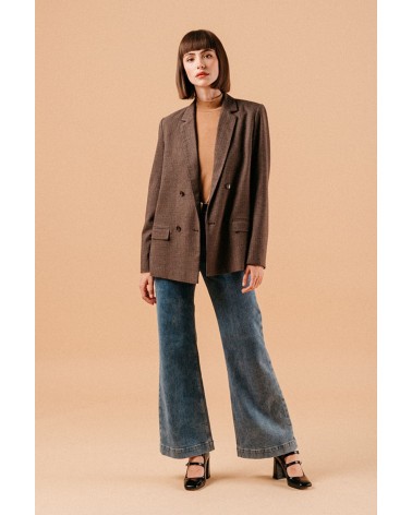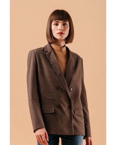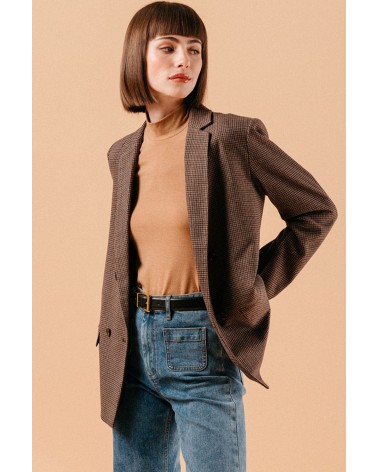 La veste Louison est une petite perle à avoir dans votre dressing. Son imprimé vichy chocolat affirme son inspiration rétro et vintage. Sa coupe droite convient à toutes les morphologies et allonge la silhouette. Louez-la !