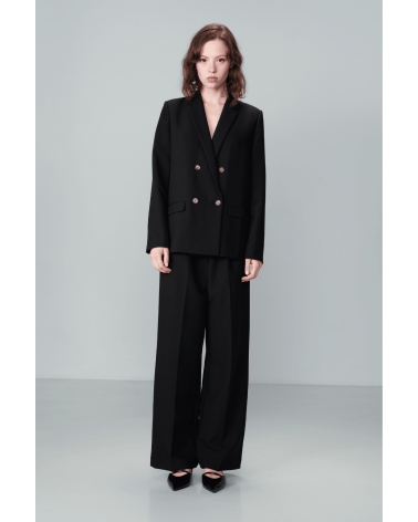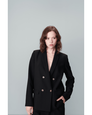 Ce modèle à double boutonnage a un col tailleur et des épaulettes qui rehaussent le design de la veste.
