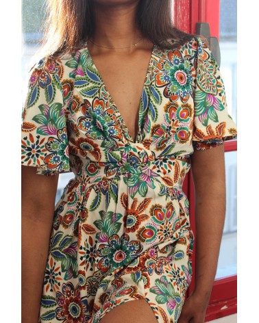 La Robe Milena est une robe maxi ouverte sur les côtés et à col V. Son volume, ses manches volantes ainsi que ses couleurs et son motif font le charme de cette robe. Douceur et harmonie elle saura rafraichir votre dressing. Alors louez-la !